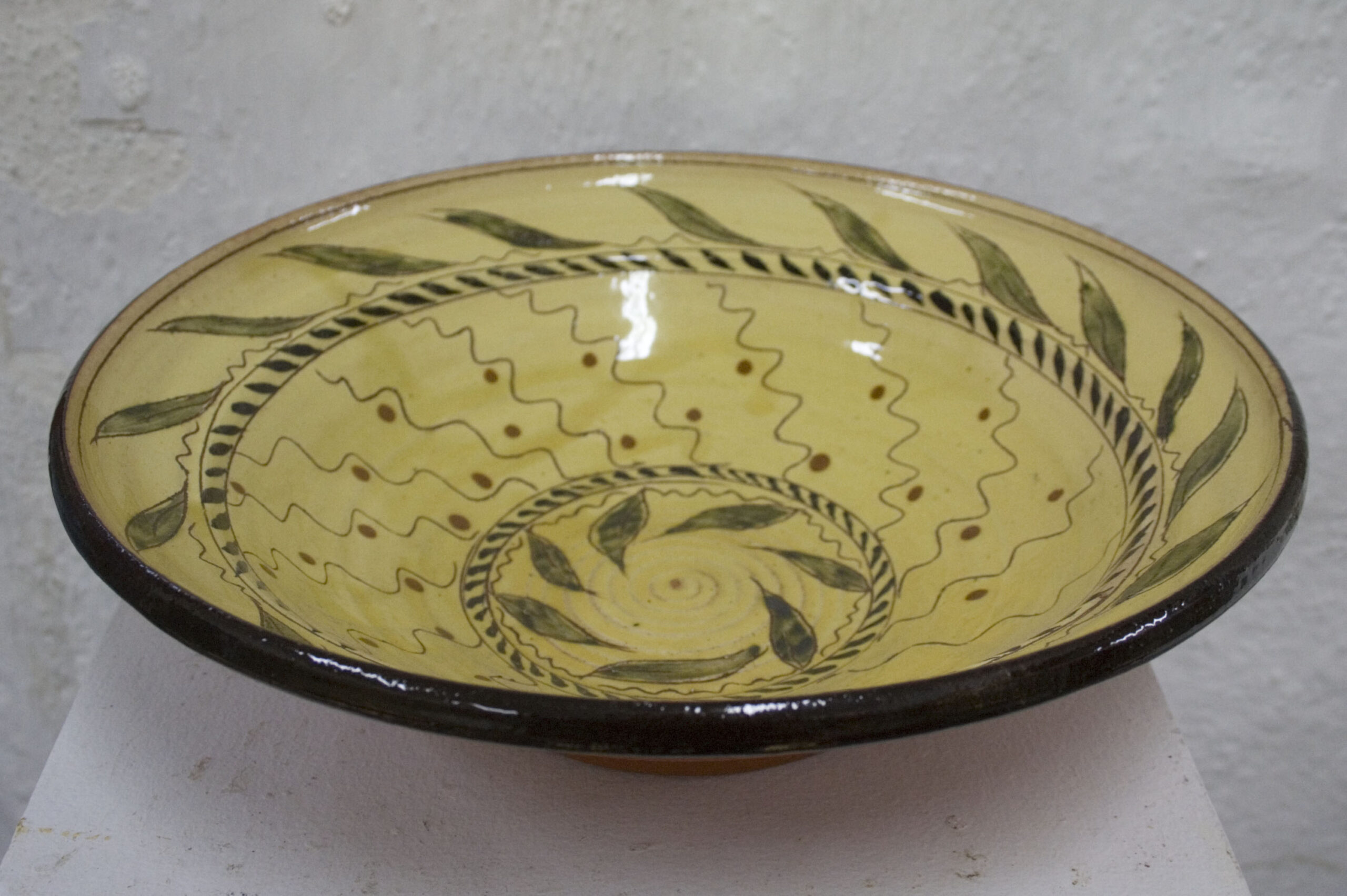 Min utgångspunkt blev att fånga känslan i de äldre keramikföremålen, jag låtsades vara en lärling till de sedan länge döda krukmakare. De som en gång gjort faten och krukorna. Genom att umgås med de gamla mästarnas verk under en lång tid fick jag fick möjlighet att bekanta sig med deras skapelser. Idag har mitt traditionella lergods begränsats till en mindre serie av spilkummar, bringare och paradfat. Ibland nått durkslag men längtan efter att skapa nytt och framförallt större tar överhand och och jag har svårt att avgränsa mig.