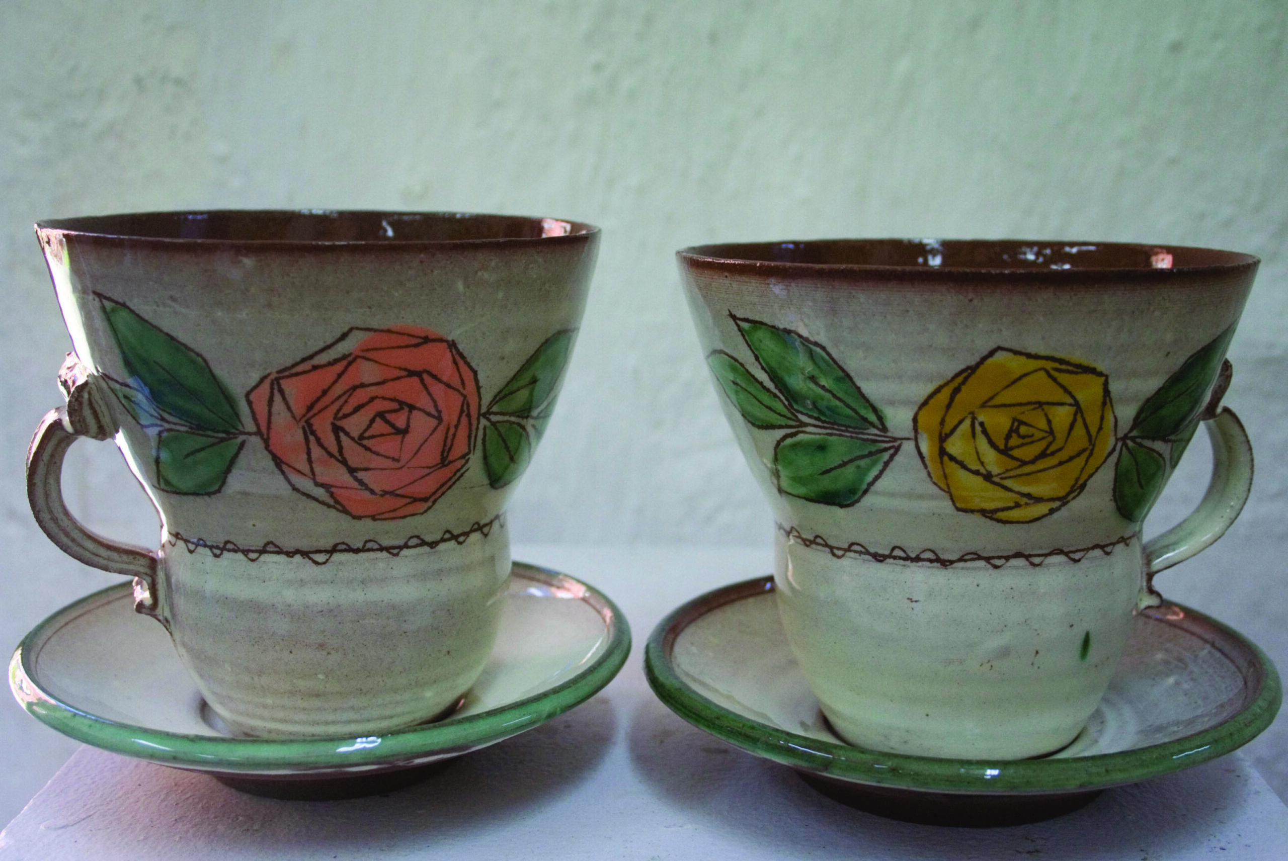 Stor tunna temuggar med rosdekor av Maria Ekberg